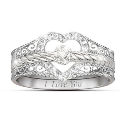I Love You HeartShaped Diamond Stacking Rings